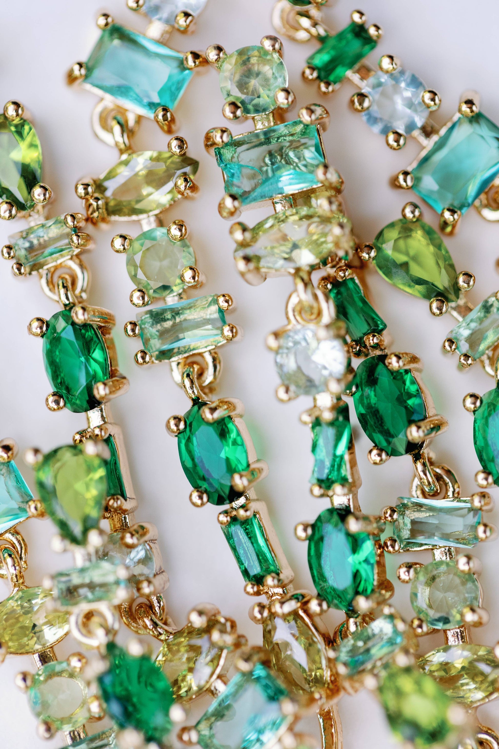 Green Ombre Crystal Layered Duster Statement Earrings