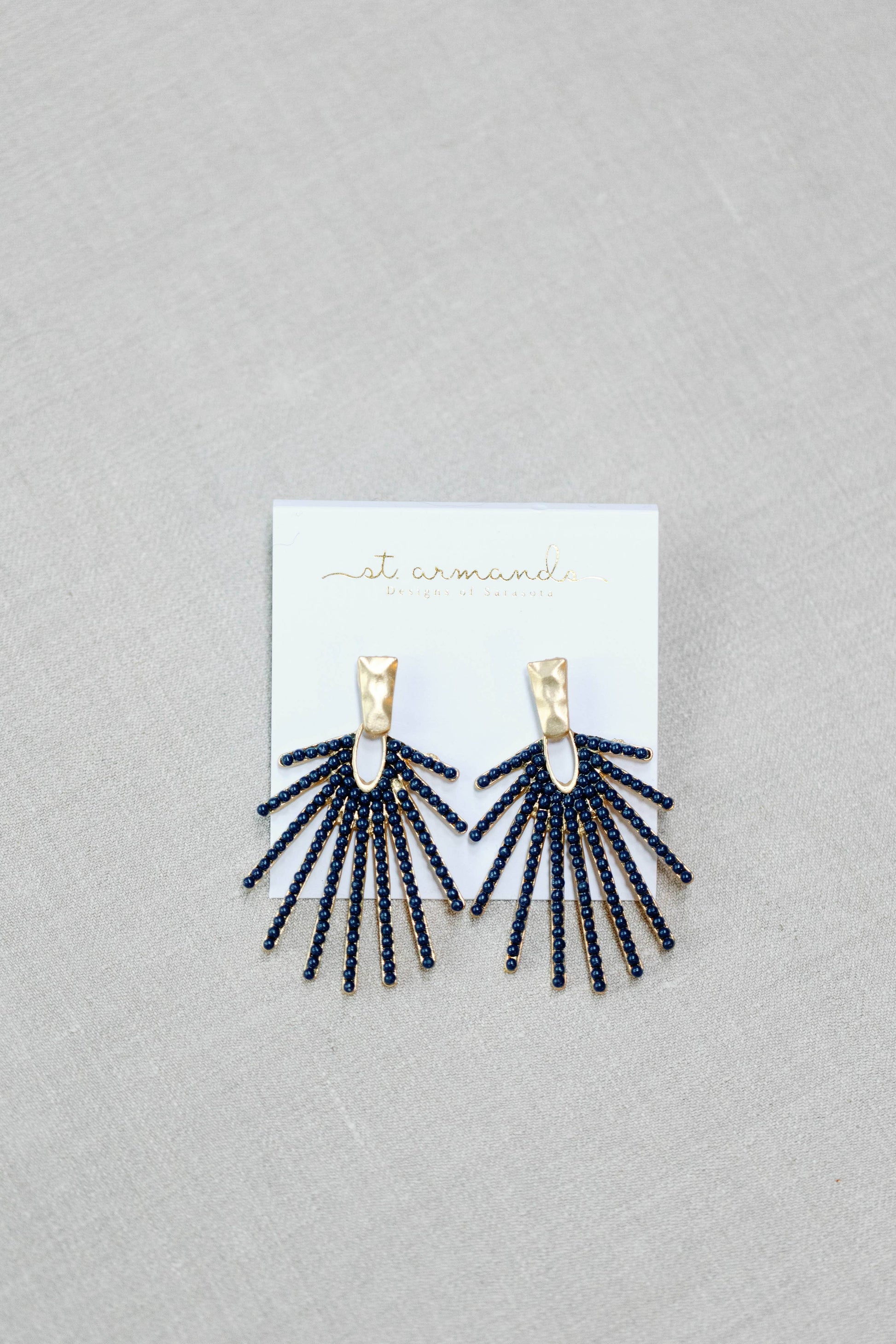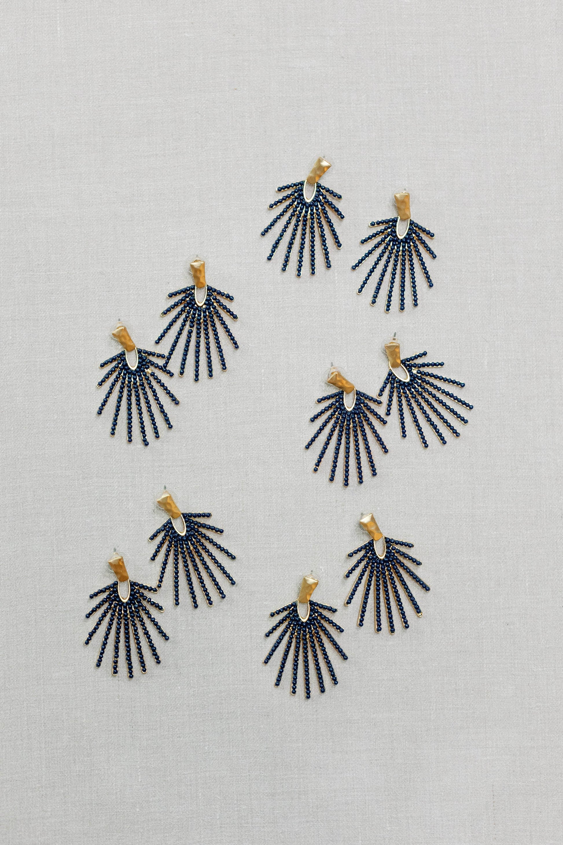 We love a good sunburst design! These navy and gold drops are the perfect statement piece, and look great with so many outfits!
