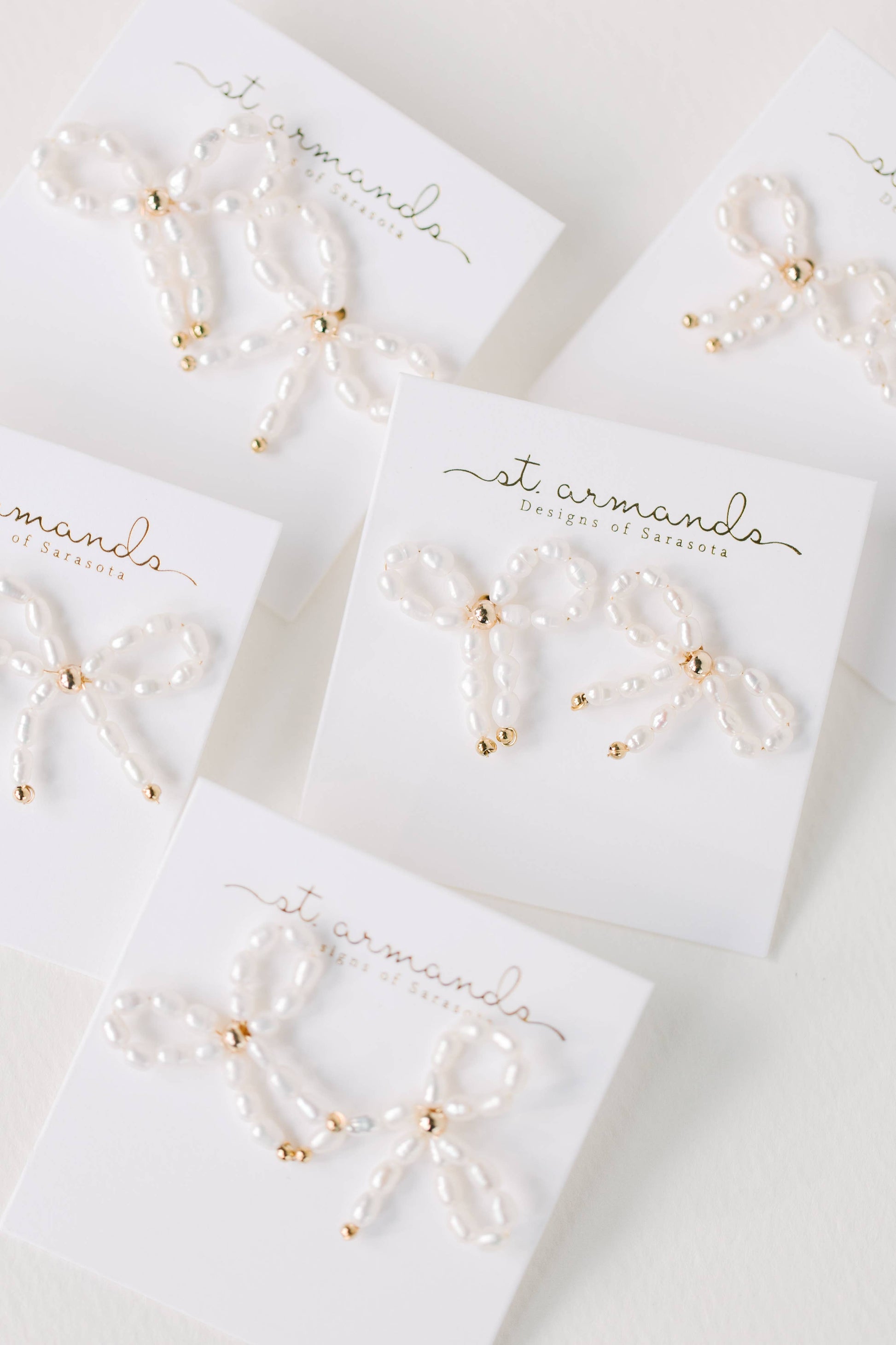 The sweetest little pearl studs make a great grab-and-go gift! They are about 1" wide and are made of natural small pearls, with gold accents. They have a pin/post back. Great for all seasons, especially holiday!