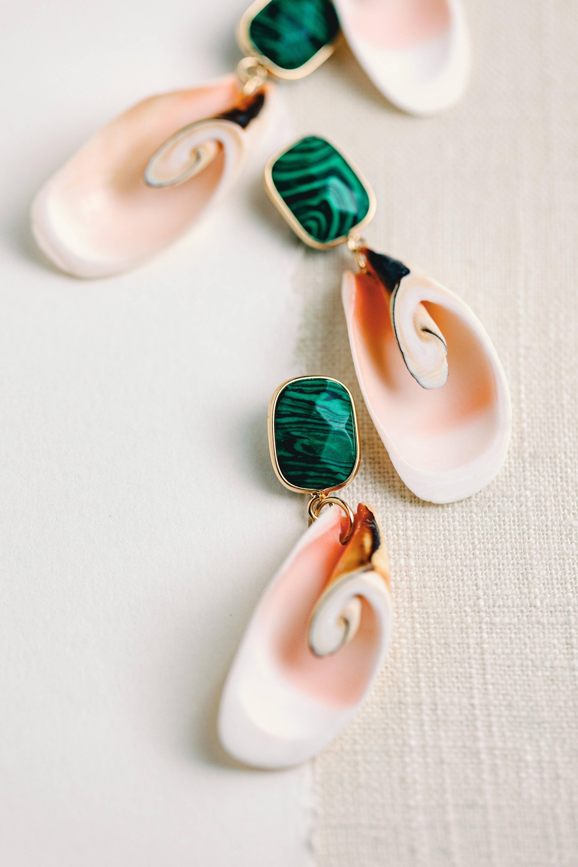 We are excited to introduce our Newest Shell Statement Earrings, where the natural beauty of pink shells meets the vibrant hues of a green synthetic malachite top! These earrings embody the essence of the ocean, bringing a touch of tropical faire to spring and summer outfits! 2.5”Long