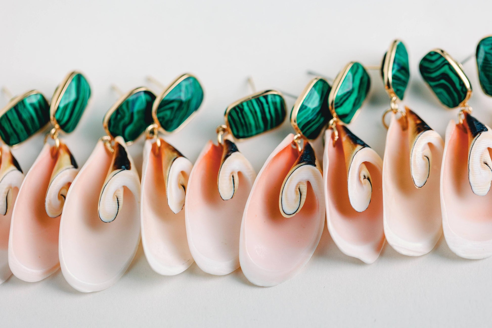 Pink Shell and Green Malachite Statement Earrings