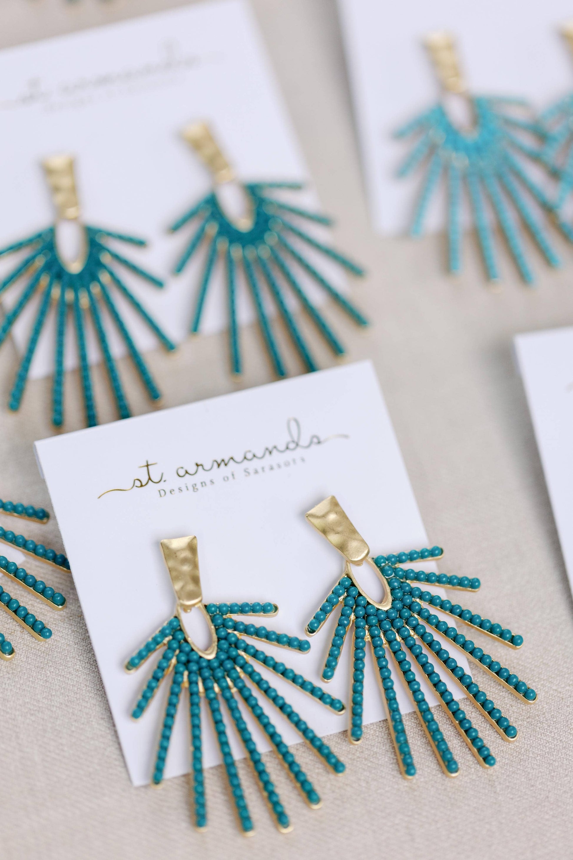 St Armands Designs of Sarasota - Dark Turquoise Sunburst Statement Drop Earrings