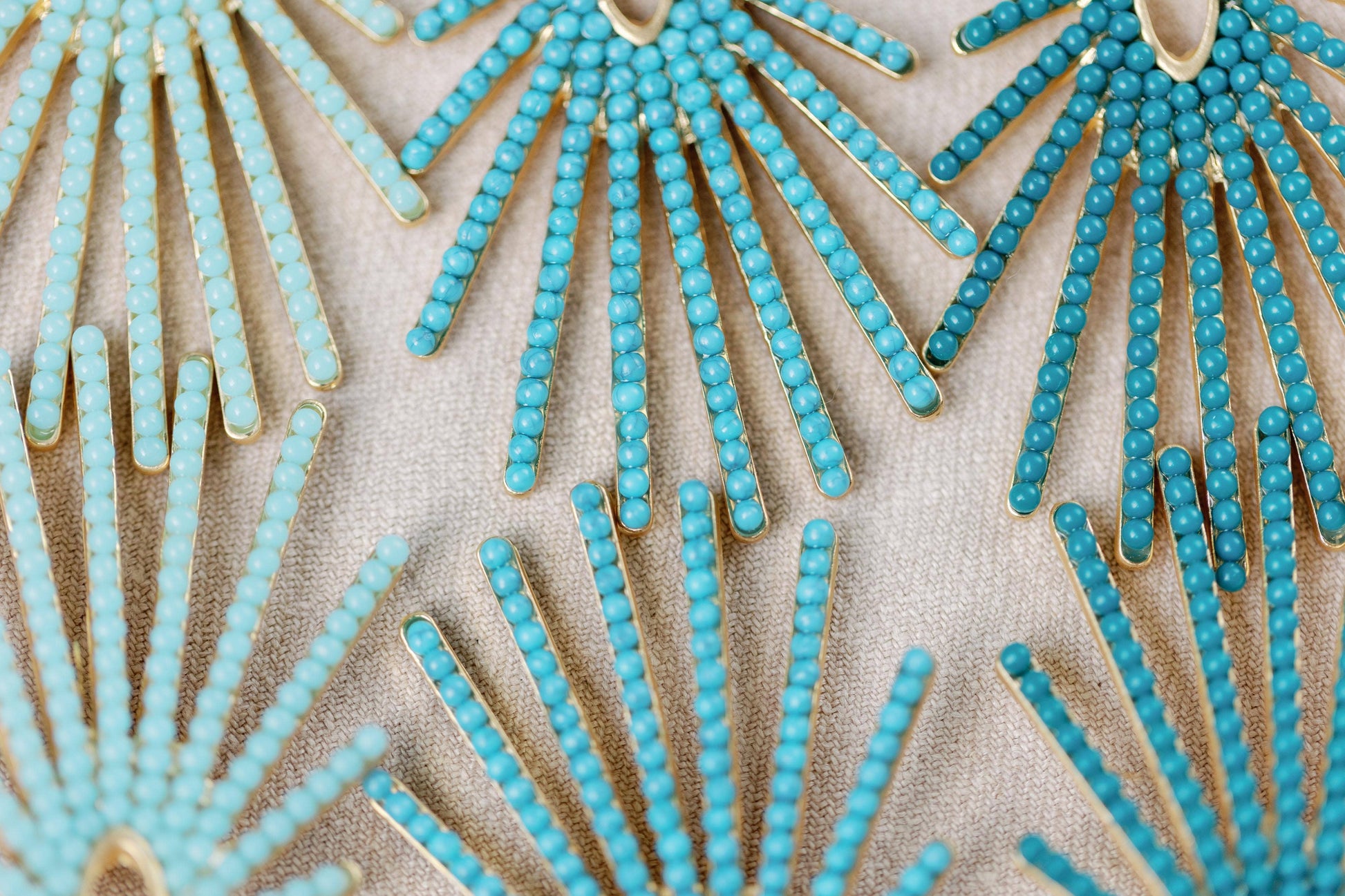 We love a good sunburst design! These turquoise and gold drops are the perfect statement piece, and look great with so many outfits. These turquoise beauties are fun all season long!